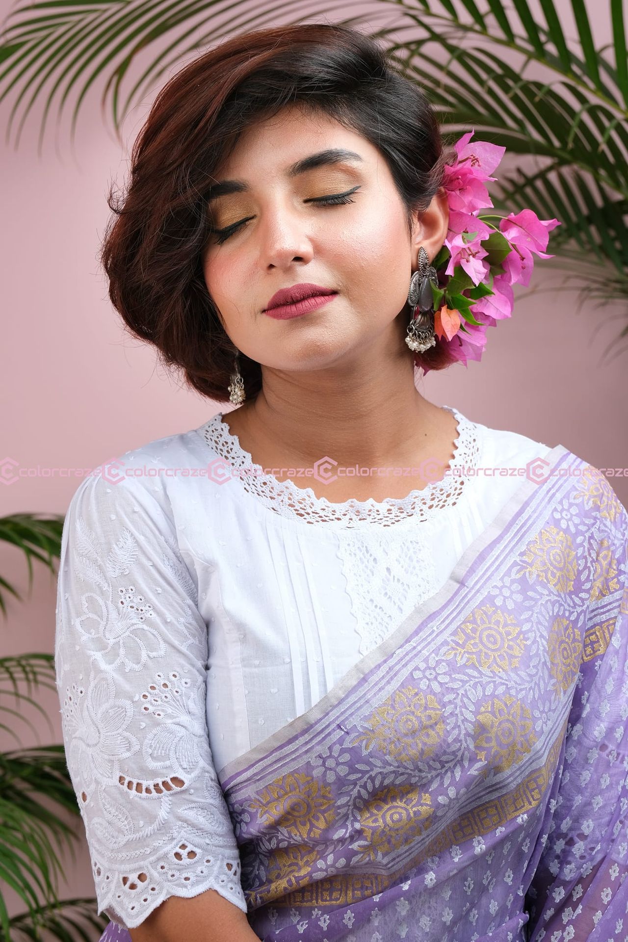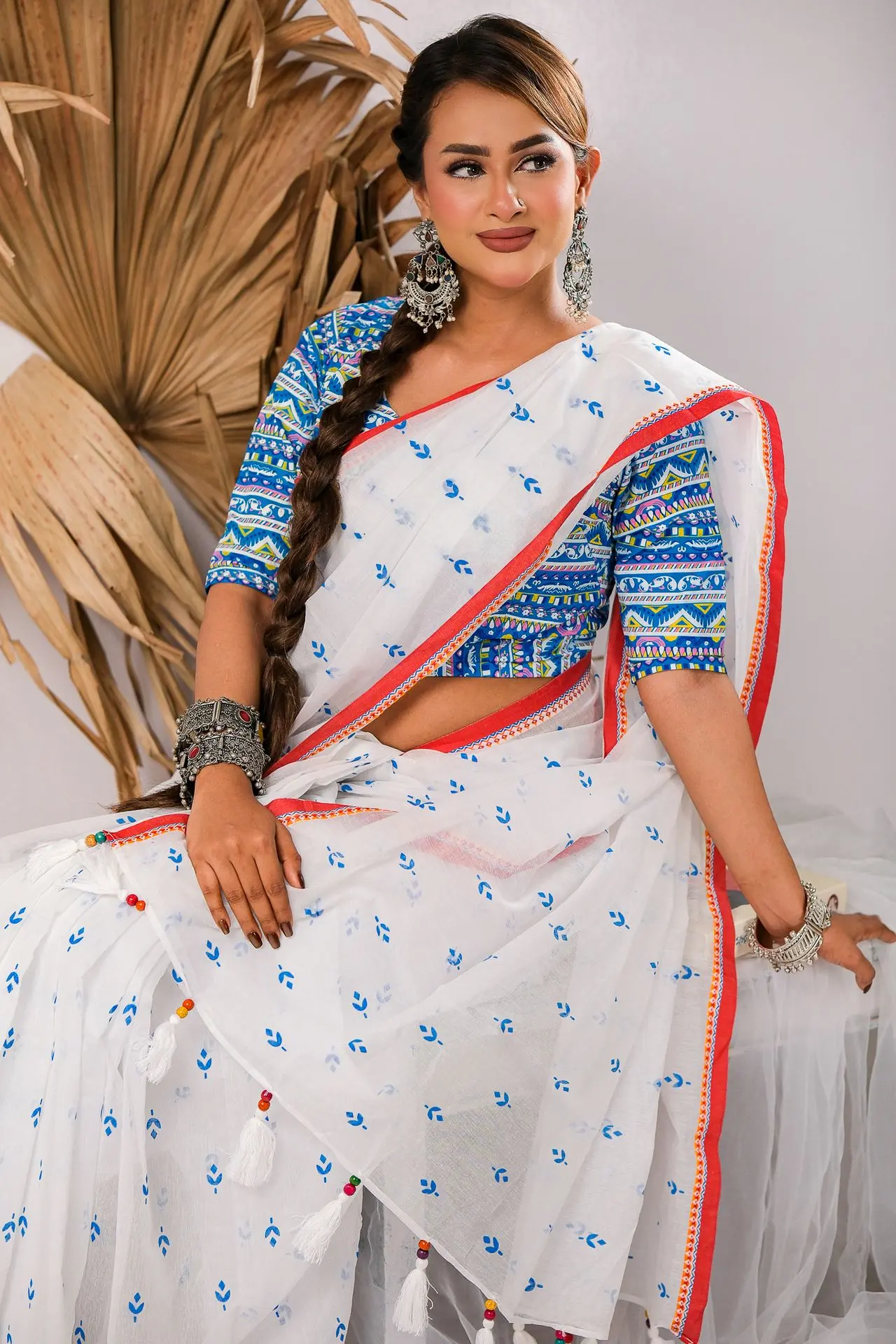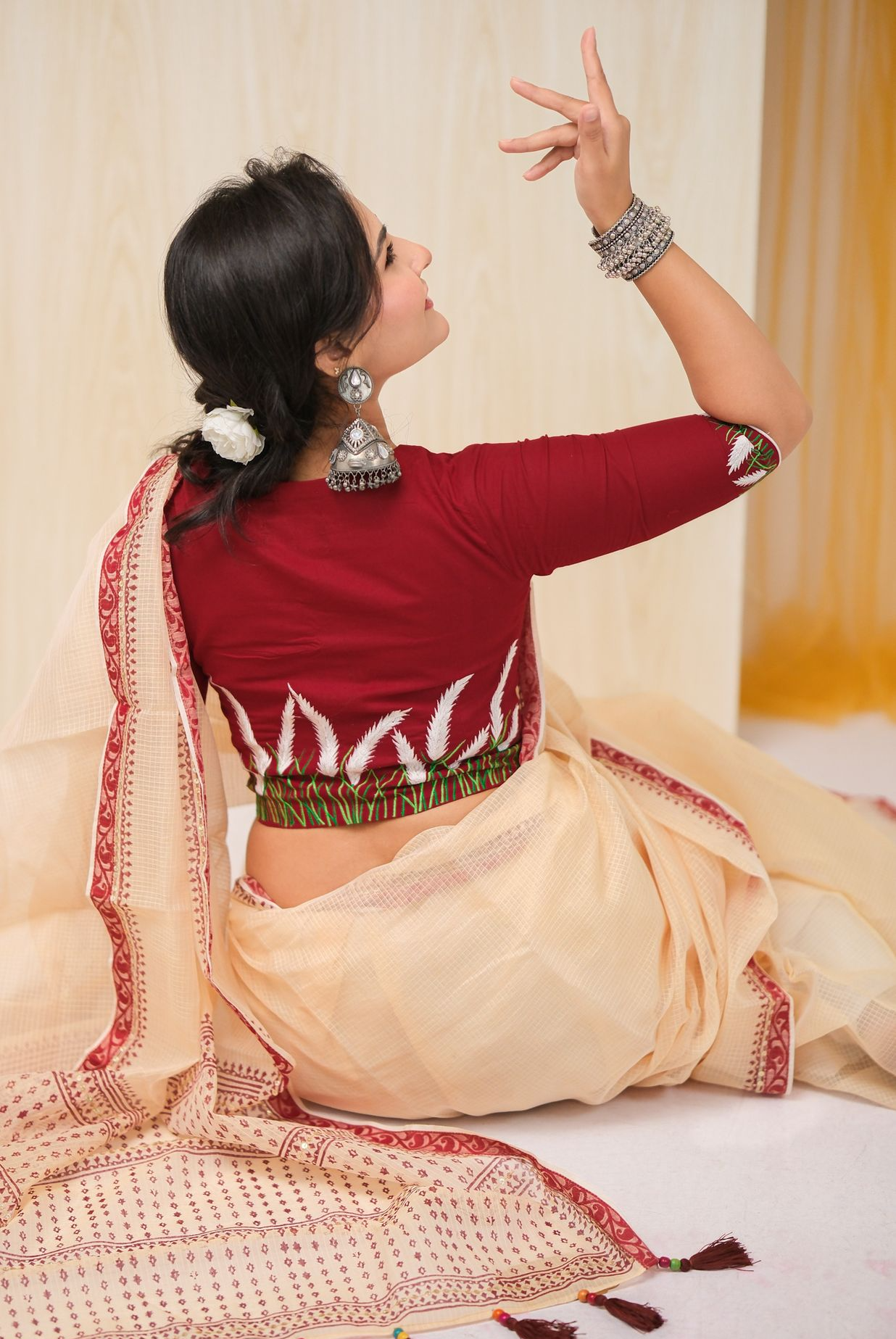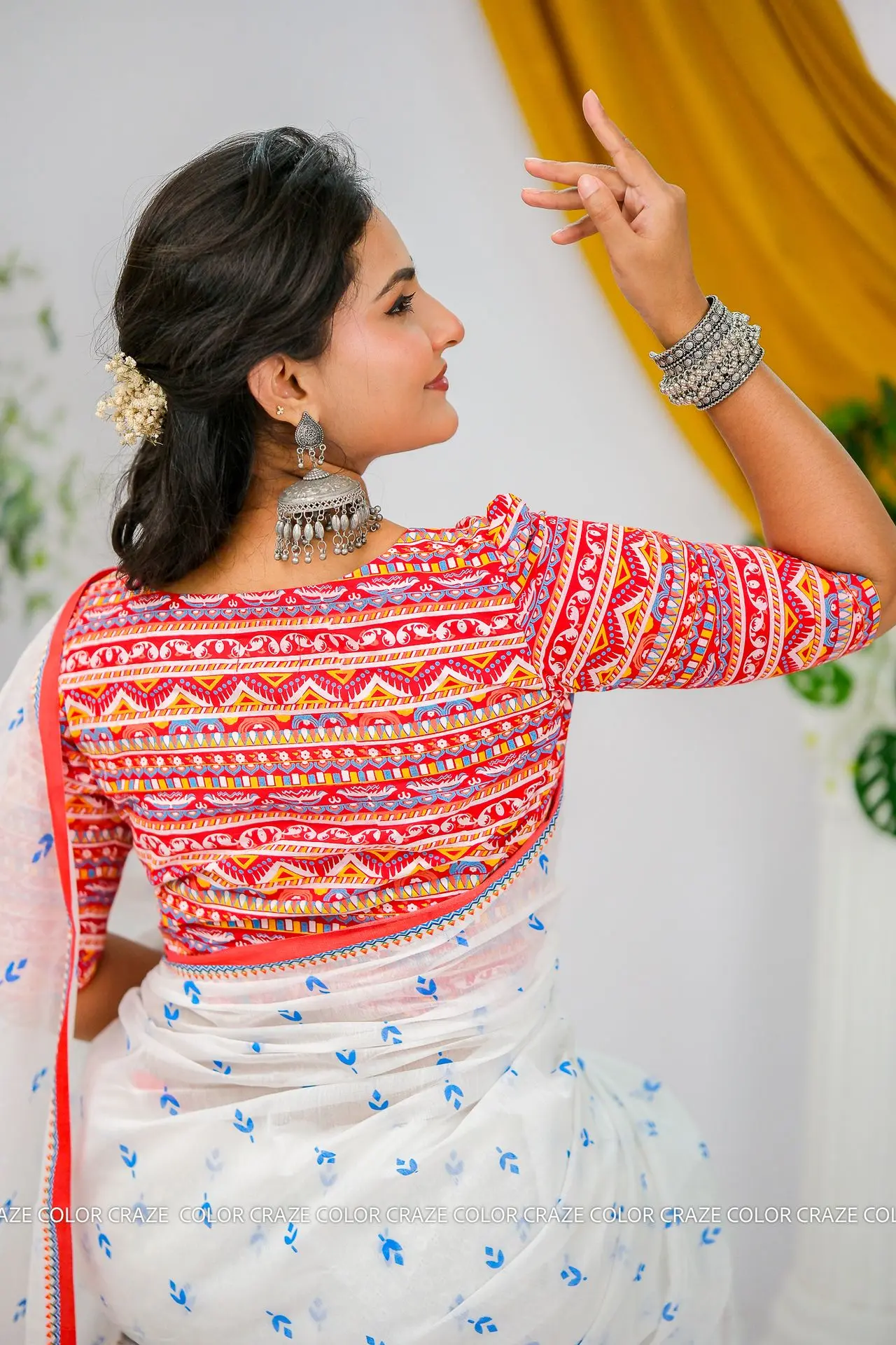 Our screen-printed cotton blouse brings a modern twist to your everyday sharee look -